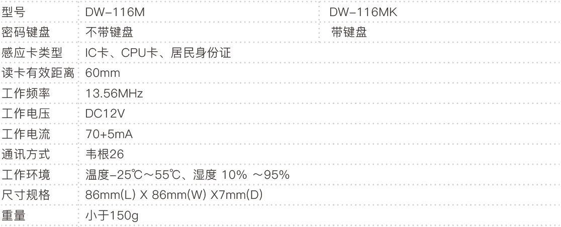 ·流线型设计,国标86电器底盒安装,美观大方 ·支持二代身份证序列号、居住证、EM、Mifare1、CPU卡等类型 ·内置蜂鸣器及LED显示 ·触控式密码键盘 ·内置多色 LED 指示,高端大气 ·红、绿全背光图案显示非法卡与合法卡 ·金属边框、钢化玻璃外壳、黑色面板 ·标准接线端子,安装方便