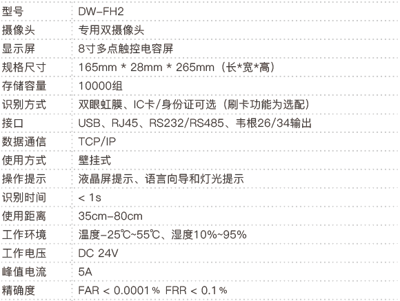 ·采用全新结构设计和全新虹膜识别算法,满足各种室外条件下的身份识别